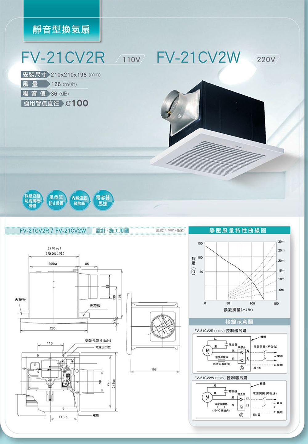 【Panasonic FV-21CV2R 浴室靜音換氣扇】
