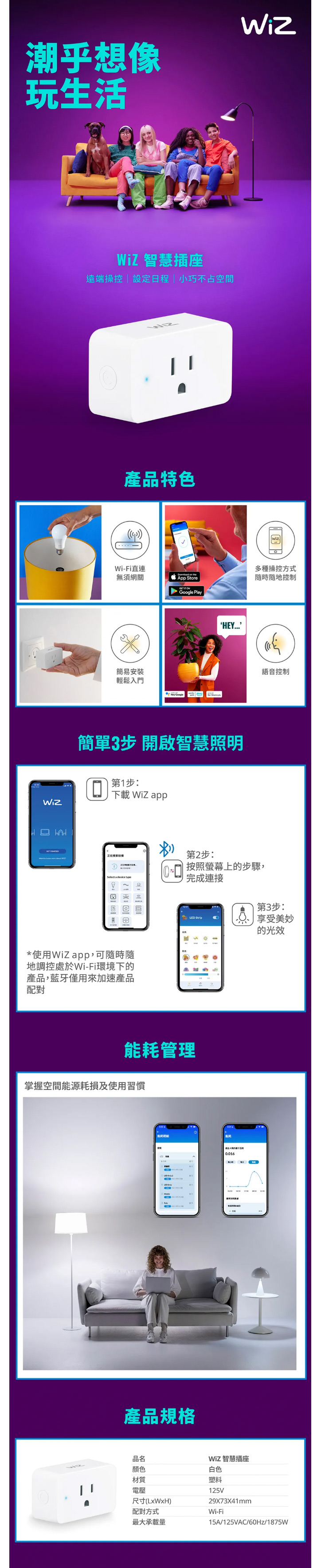 Philips 飛利浦 Wi-Fi WiZ 智慧照明 智慧插座(PW05N)